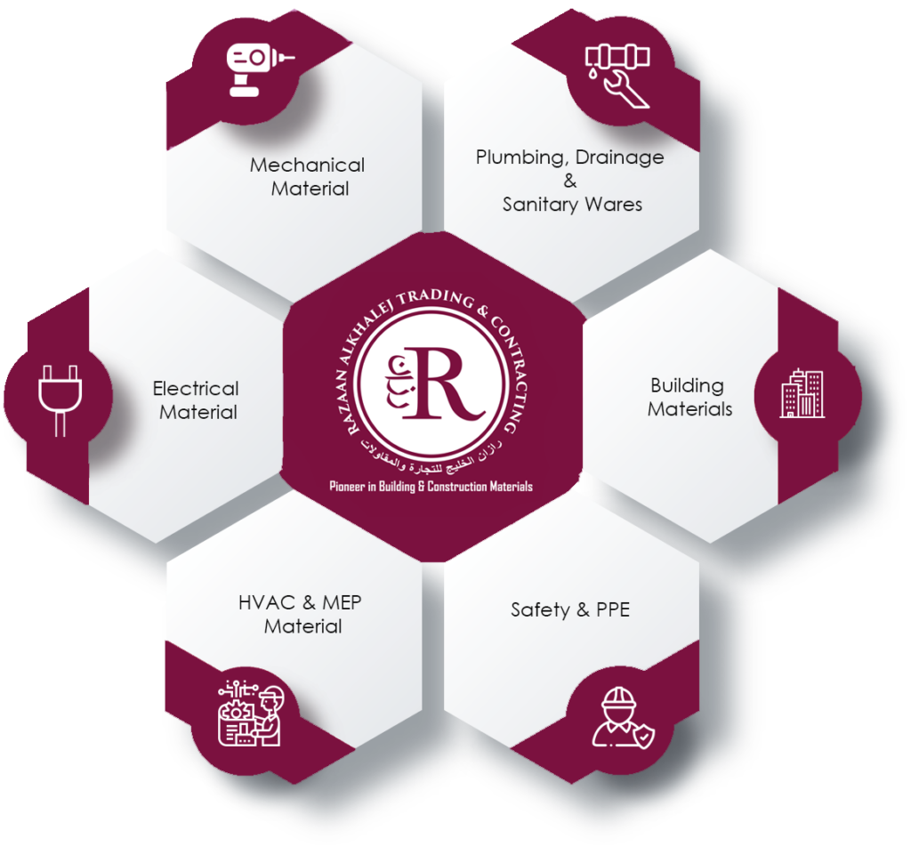“RAZAAN ALKHALEJ TRADING & CONTRACTING” is a leading building & construction material supplier in electrical, mechanical, HVAC, instrumentation, plumbing, drainage, fire protection, safety, PPE, all kind of tools, building materials and construction consumables in the Qatar markets. We deliver quality products at the best value of your money, budget and within delivery time.